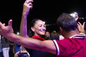 Luego vino el show de Alma Chango, con varias composiciones propias y un folclore más moderno, y más tarde un homenaje muy especial a Los de Areco. La reunión de sus integrantes originales y el repertorio de clásicos del folclore arequero le dieron un marco más que emotivo a la presentación, que celebró la enorme trayectoria del grupo y su aporte a la cultura local con clásicos como “Reliquias de mi pago” y “De Areco pa’ Don Segundo”. Cincuenta años de amor por nuestro pueblo y su música, unidos una vez más en la celebración de Lo de Co. El grupo de danzas tradicionales Areco Baila acompañó algunos tramos de la presentación con varios bailarines en la pista.