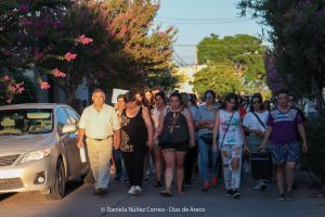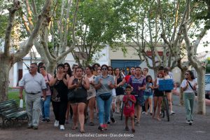 La caravana partió de Plaza Gómez, encabezada por la familia de Eli y acompañada por un importante número de personas de nuestra localidad. La columna se desplazó primero por calle Alem hasta llegar a Alsina y de allí a Plaza Arellano, al banco rojo que recuerda a las víctimas de femicidio.