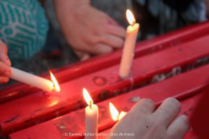 También se leyeron palabras de la madre de Eli: “mi dolor de madre es tan grande que mi más íntimo deseo es que ninguna persona en el mundo pase por esta situación. Sin embargo, son muchas las personas que ven arruinadas sus vidas por circunstancias similares. Uno mira en los medios de comunicación las noticias sobre la violencia y las termina naturalizando, hasta que de pronto nos toca de cerca. Es ahí donde se invierten los roles y casi como en un sueño tremendo nos vemos clamando ante la sociedad por la eminente necesidad de un ‘basta de violencia’. No hay palabras, solo lágrimas”, afirmó.