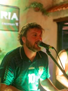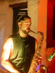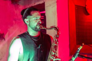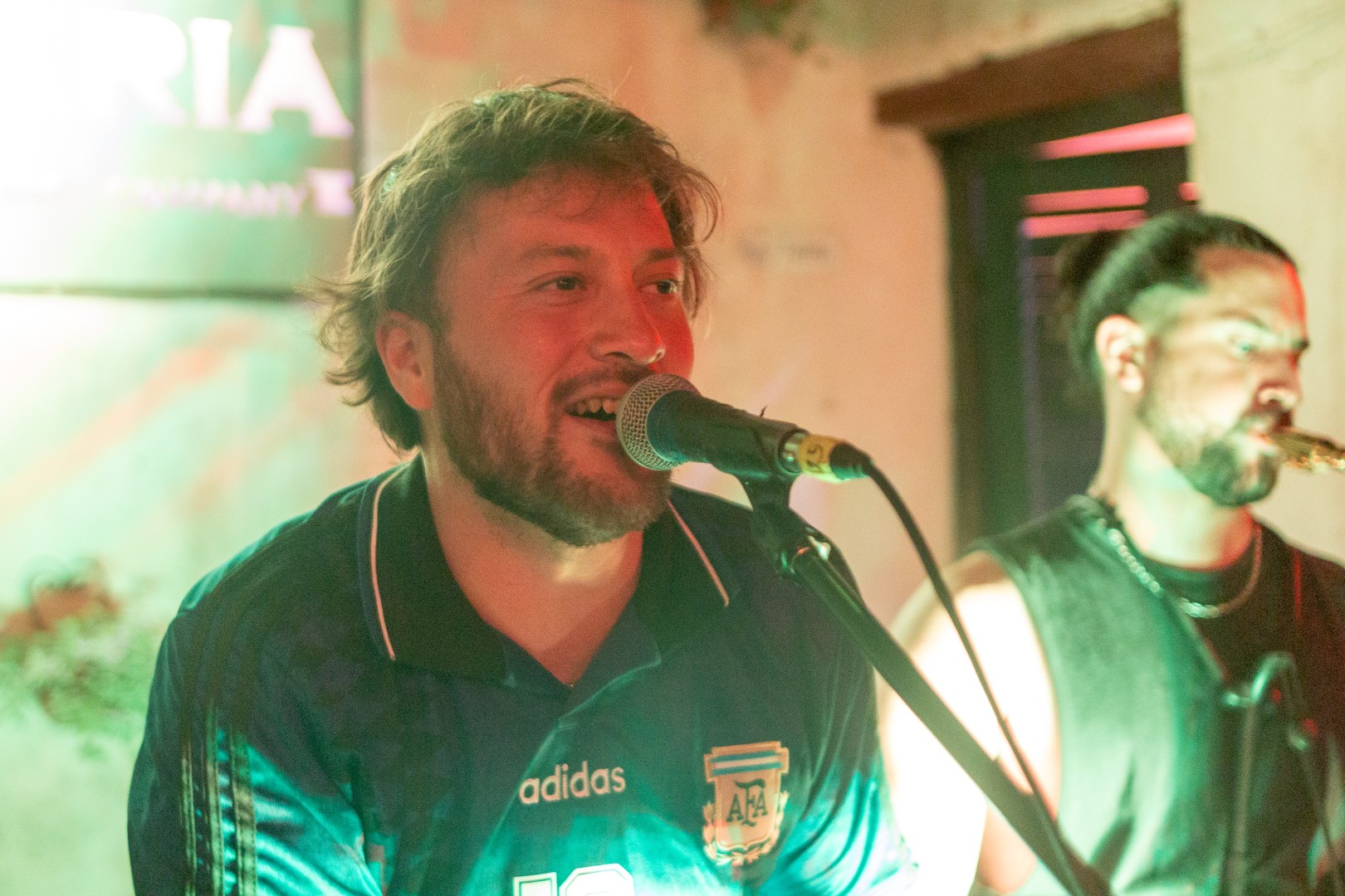El dúo aprovechó el nuevo espacio de María, ahora sobre calle Mitre. El patio, especialmente adaptado con barra y espacios para compartir, se convirtió en el escenario del show de esta versión del Chapu acompañado solo por su piano y el saxo de Viu.