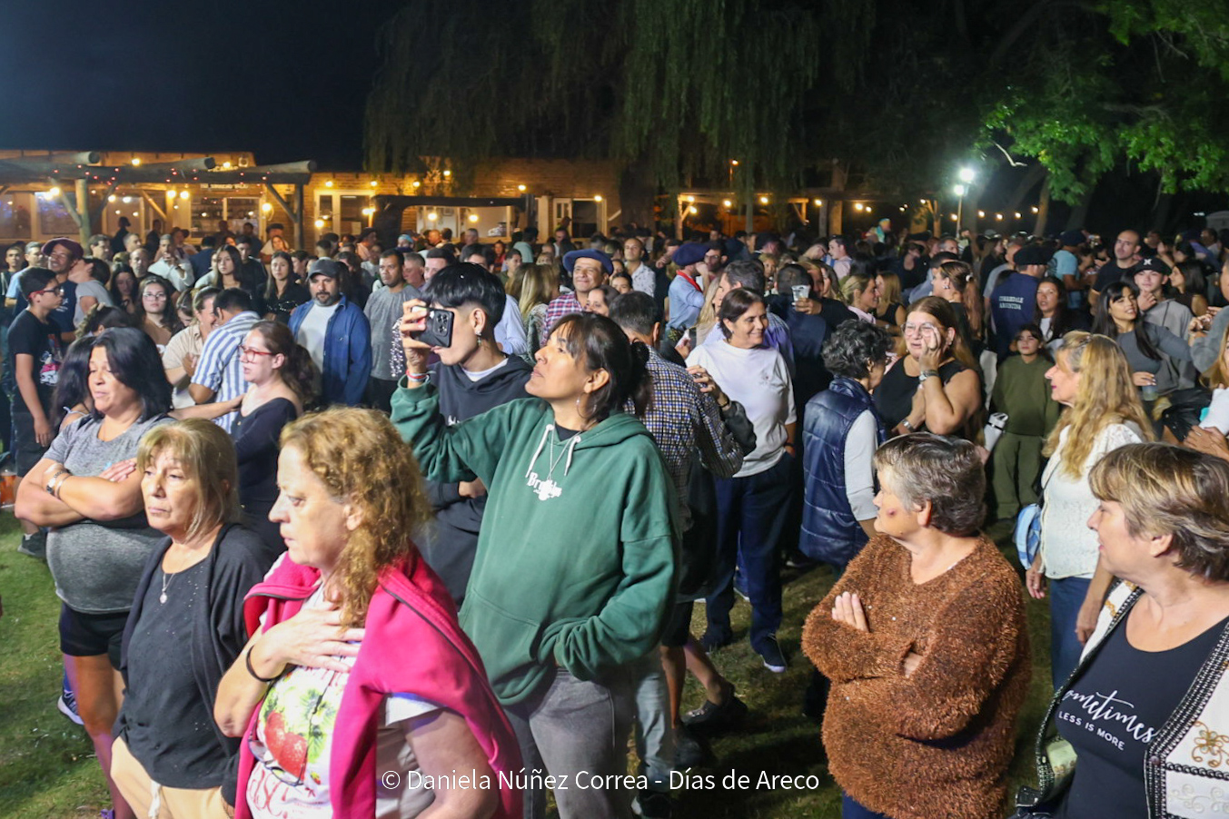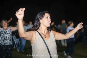 En el gran espacio verde que rodea a la parrilla, a metros de la ruta 41, el escenario convocó una importante cantidad de público desde temprano. Así fueron pasando las presentaciones folclóricas, que trajeron gatos, chacareras, zambas y más ritmos y tuvieron algunas sorpresas, como una potente sección a capela a cargo de la cantante de Capitán Sarmiento Yamila Giardini.