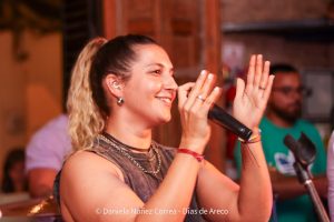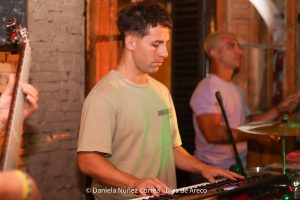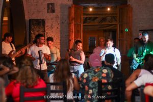 Hubo noche de cumbia ayer en Barril con la presentación de Frappé, una joven banda integrada por músicos de Areco y Capitán Sarmiento. En el primero de una serie de espectáculos que tendrá este fin de semana el bar, hicieron sus versiones de clásicos de referentes históricas de la música popular como Karina y Gilda y de nuevos artistas como Cristian Nodal o María Becerra.