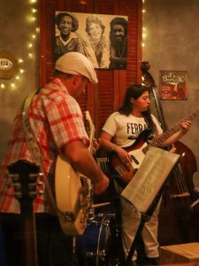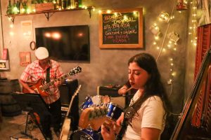 Para este show en La Cuadra, que tuvo que adaptarse al interior del bar por el mal tiempo del domingo, eligieron compartir algunas composiciones propias como un aire de chacarera, y también versiones de clásicos de Willy Crook, Cerati y los Beatles, entre otros. Juanjo estuvo en guitarra, Agus en bajo, contrabajo y acordeón y Lucy en percusión con cajón, batería y trompeta.