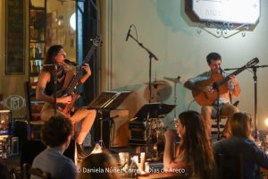 Sabrina Destefanis y Walter Ratto abrieron la noche con las cuidadas versiones de tangos y milongas de El Revire. “Se armó una linda jornada con L’Grela, que ahora está en formato cuarteto. Hoy nosotros compartimos con un percusionista y una bandoneonista”, contó Walter Ratto, integrante de El Revire. “El tango tienen varias facetas y las quisimos ir recorriendo un poco esta noche. Nos pasa que a veces vamos a tocar a milongas y es tango para bailar, pero está también el tango más nostálgico, más “llorón” y los valses, que trajimos a la propuesta de hoy”.