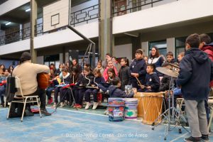 Del acto de apertura de la feria participó esta mañana la orquesta escolar de la Primaria N° 4 que interpretó el himno usando algunos instrumentos hechos de material reciclado.