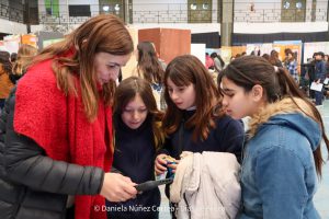Betiana Milanesi, directora de la Secundaria N° 1, dio la bienvenida y apuntó que “este es un encuentro donde nos podemos conocer y mostrar estas cosas que son maravillosas. Tenemos un motor muy grande que son los chicos de todos los colegios. Sabemos que feria de ciencias demanda tiempo y los chicos y los profes le dedican todo. Nos encanta recibirlos en casa”.