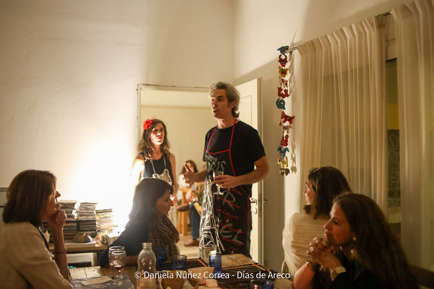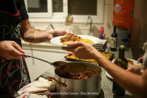 La noche abrió con la bienvenida a cargo de los anfitriones, que recordaron que hace una década empezaron a organizar estas cenas con show donde, como el título lo dice, cocinan y tocan. La idea surgió después de una gira y se ha ido repitiendo en distintos puntos del país y del mundo, siempre bajo la consigna de fomentar el encuentro y disfrutar de la música y la gastronomía.