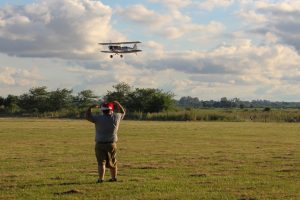 Después de sobrevolar el predio varias veces y ante el enorme entusiasmo de los más chiquitos, finalmente Papá Noel aterrizó en el Aeroclub con su barba blanca y su bolsa de regalos.