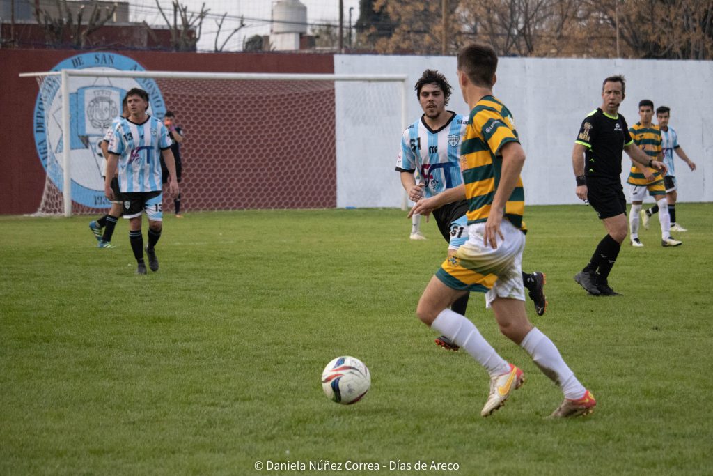 El partido, que por momentos entró en la categoría de partidazo, fue muy ágil y vibrante porque San Antonio se agrupó bien cerca de su arquero Martín Ortiz (una de las figuras) apoyado en la veteranía de José Romero, en el fervor de Jorge Galeano y Jorge Chara y en la vitalidad de Francisco Simionatto, que jugó como volante izquierdo pero cuando tuvo la posibilidad respondió de contragolpe con la inteligencia de Cairo (que se ubicó como un 9 tirado atrás), la velocidad de Saulino y los potentes derechazos de Ramírez. Con estas armas se colocó 2 a 0 arriba en el marcador.