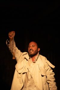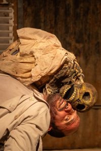Mansur maneja con gran destreza la doble interpretación y por momentos parece casi desaparecer detrás de los demás personajes cuando está en escena cada minuto de la obra. Cuando el “monstruo” se pregunta por su origen, Mansur logra que veamos solo al títere y que empaticemos con sus dudas, con su especie de inocencia infantil. Pero después nos enfrenta a la violencia que ejerce sobre su propio creador, siguiendo la clásica trama del libro original.