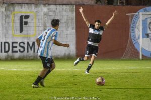 El primer tiempo no tuvo situaciones claras para ninguno de los dos equipos hasta que a los 30 minutos, Gallardo hizo gala de su habilidad para dejar atrás a los rivales y puso el 1 a 0 en una de sus clásicas maniobras. Después, Rivadavia se quedó con un jugador menos por la expulsión de Tomás Martínez.