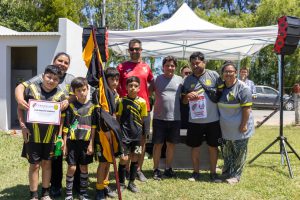 Adrián Tabares coordinó una organización de la que formaron parte dirigentes, socios, allegados y jugadores de la entidad de la Plaza Belgrano que a manera de reconocimiento le obsequió un banderín a los clubes participantes.