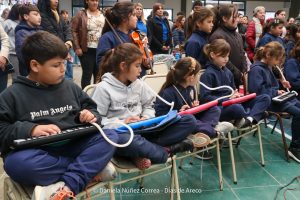 Más de 160 stands y casi 600 participantes de toda la región exponen sus propuestas de instituciones educativas de todos los niveles que abordan temáticas como salud mental, ambiente, historia, producción y arte. Esta mañana fue la apertura oficial, de la que participaron banderas de ceremonia y autoridades, y la Orquesta de la Escuela Primaria N° 4 interpretó el Himno Nacional con la voz del docente Nacho Leguizamón.