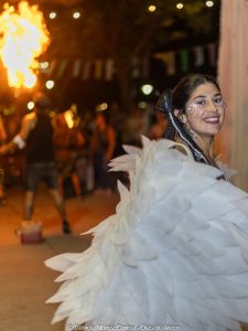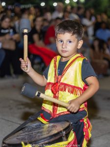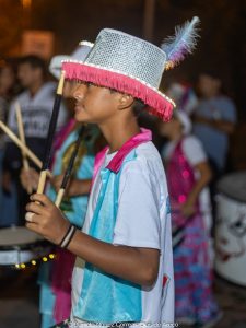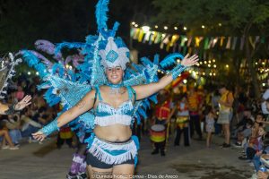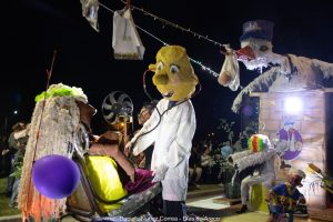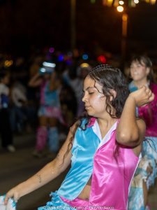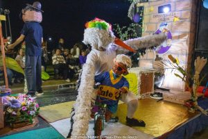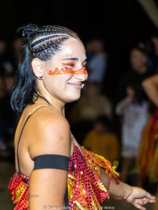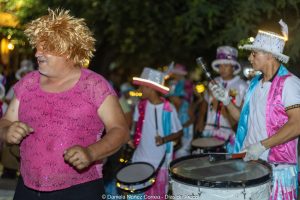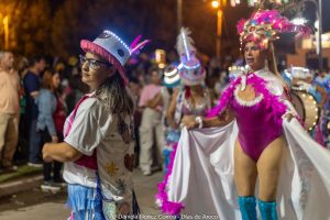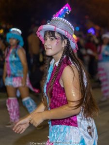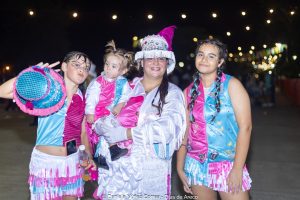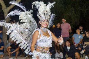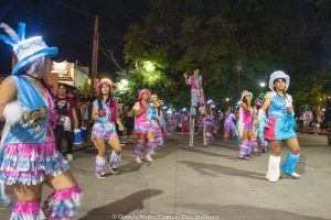 En el tercer encuentro de estos carnavales 2026, las murgas desplegaron su música y color y las carrozas y máscaras sueltas interactuaron con el público, especialmente con los más chicos. Esta vez la comparsa La Teresita de la localidad de Luján fue la invitada de la noche y mostró su combinación de música y pasistas vestidos mayormente de rojo y amarillo y cerrando con banderas argentinas.