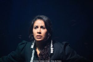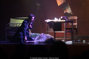 Ocampo se pone al hombre la puesta y lo hace con un enorme compromiso actoral. Los 45 minutos que dura aproximadamente la obra son casi en tu totalidad un monólogo que sabe llevar con habilidad. La soledad, la escritura, su destino como mujer en un rol invisibilizado, tanto como cuidadora pero también como escritora fantasma simulando que Kostia sigue gozando de salud, son los grandes pilares en los que se apoya la dramaturgia y a los que Ocampo les pone el cuerpo con soltura.