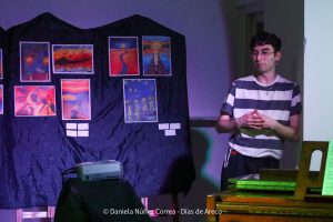 El alumno Santiago Valenza de la materia Historia III del Profesorado de Artes Visuales hizo una introducción histórica a la temática y explicó que el movimiento surgió a fines del siglo XIX en Francia. Además, dio detalles de cómo fueron cambiando los procesos creativos de artistas plásticos y músicos en esa etapa.