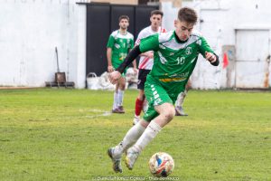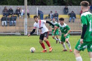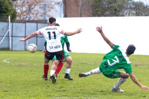 A los 15 minutos, Ricardo Barrientos coronó con un cabezazo un cuarto de hora largo de pleno dominio verde y estableció el 1 a 0. Hasta ese momento, Juan Demergasso, con los cinco sentidos puestos en el juego, manejó la batuta de una ofensiva que se recargó sobre la izquierda donde la potencia de Nazareno Carrasco le creó muchos problemas a Tomás De Blas.