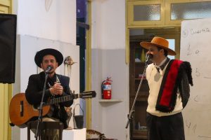 A lo largo de dos horas, el grupo desarrolló y probó distintas payadas junto a Tokar y Gabotto, que aportaron toda su experiencia como payadores y músicos folclóricos. Una propuesta más para conocer más de las tradiciones gauchescas e incluso incorporar herramientas para la docencia.
