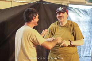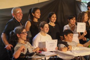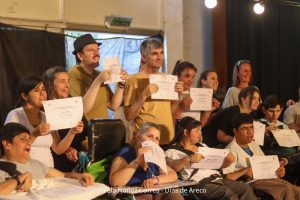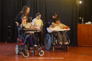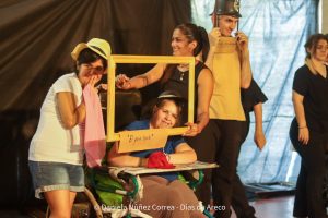El Hogar San Camilo tuvo una fuerte participación en el taller, con algunos de sus residentes explorando el teatro y varios de sus trabajadores sumándose como facilitadores. “Para realizar este trabajo han sido más importantes que nunca los facilitadores porque ellos ayudan en escena a que los chicos puedan imaginar lo que están jugando. La inclusión de trabajadoras del Hogar San Camilo nos ha ayudado mucho con el abordaje de las discapacidades, porque hay cosas que uno no sabe, y por supuesto Alfredo, Sol e Irene que hace mucho son parte del taller y son fundamentales”, destacó Grasl.