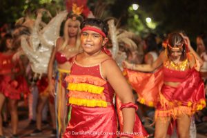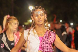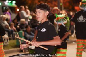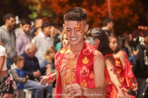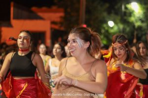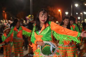 Hubo también una murga invitada desde la localidad de Luján: “El repique del Lasa” trajo aires de murga porteña, percusión, vientos y baile representando a uno de los barrios populares más importantes de esa ciudad. La agrupación, con trajes naranjas y verdes, mostró un importante despliegue de artistas y fue la encargada de cerrar el desfile de anoche.