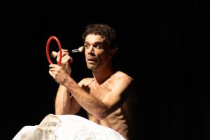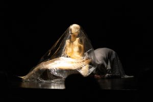 Definida como una experimentación y un trabajo en proceso, “Umbrales…” conjuga la literatura de Falivene y la corporalidad de Menconi en una serie de escenas que exploran la vida, los vínculos, la pérdida y el sentido de las cosas, con pasajes oscuros y otros que se animan a una cierta inocencia infantil.