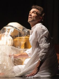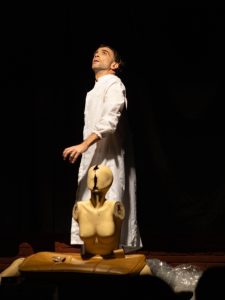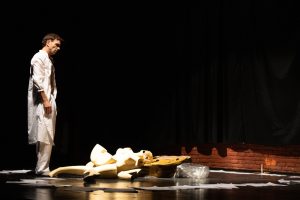 Si bien es un proyecto en desarrollo, la puesta tiene muchas de las marcas de La Zalzera: climas oscuros, sensaciones de opresión y soledad y un intérprete marcado por textos que indagan la condición humana. En varias escenas, la obra construye imágenes y se anima a empujar al público a dejar un poco de lado una línea argumental clásica y sumergirse en las sensaciones que los cuadros les generan.